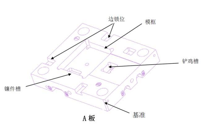 (1)模胚圖紙上的基字(倒角)與模胚上的基準需一致,為避免誤解而出現(xiàn)加工混亂,編程時基準邊朝向自己的方向。